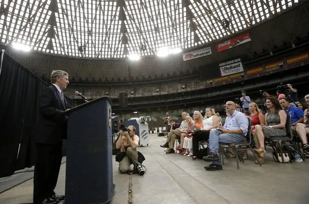 哈里斯县法官埃德·埃梅特在2014年8月的新闻发布会上提出将阿斯特罗多姆改造成世界上最大的室内公园的计划。帕特·沙利文/AP当然,城市土地研究所的报告提供了一个比迄今为止任何人提出的更详细的拯救阿斯特罗多姆的愿景。该小组由洛杉矶拉特科维奇公司的总裁韦恩·拉特科维奇主持,他是填充开发的专家,考虑了阿斯特罗多姆作为NRG公园综合体的一部分,该综合体是休斯顿德克萨斯队和休斯顿牲畜展览会和牛仔竞技表演的主场。报告仔细考虑了他们作为利益相关者的利益。