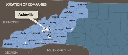 根据2014年AdvantageWest人口普查,西北卡罗来纳州户外产业制造商的位置。AdvantageWest“这听起来很傻,因为这是一个城市公园,但这个城市公园将帮助我们吸引更多员工到[阿什维尔],”当地一家 Astral的总经理Yonton Mehler说,Astral是该县领先的划桨设备制造商之一。像许多阿什维尔的户外装备公司一样,Astral正在招聘,几乎所有员工都参与划桨运动。(一个显著的例外是公司的簿记员,“她并不是真正的户外爱好者。”)