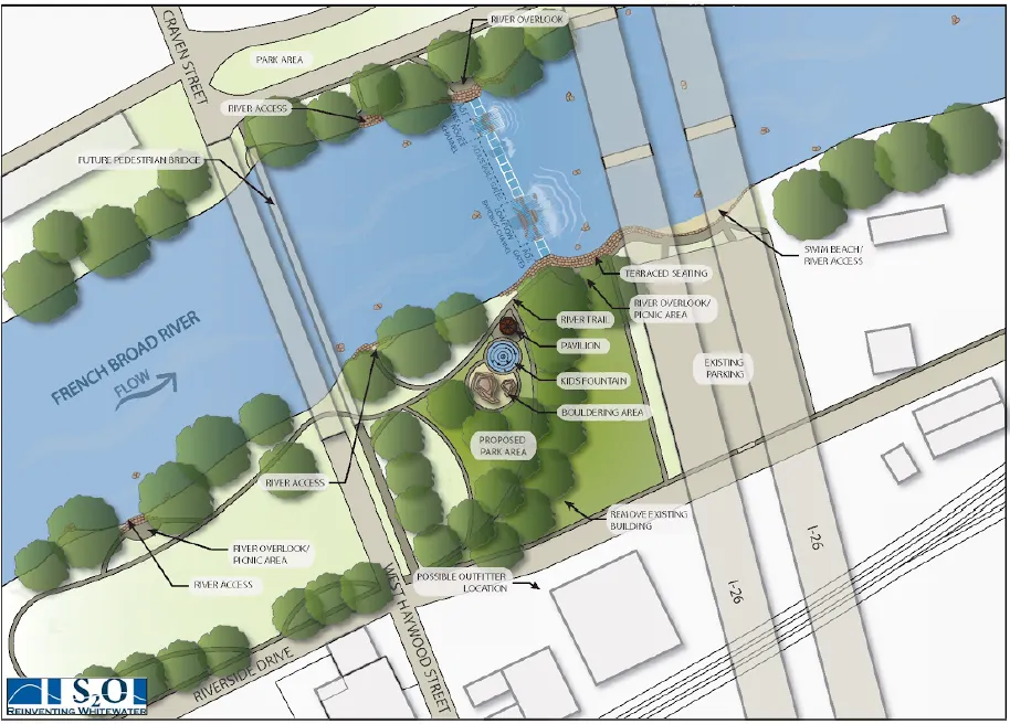 如果建成,白水公园将由私人资金资助,但由城市运营,作为更大河流艺术区重建计划的一部分。完成的综合体将包括一个凉亭、一个攀岩区、一个儿童喷泉以及几个步道和野餐区。它还将与市中心繁忙的零售区相连,那里有餐馆、酒吧、画廊和艺术家工作室。新比利时酿酒公司正在距离这里仅有一百码的地方建设其第二个地点。