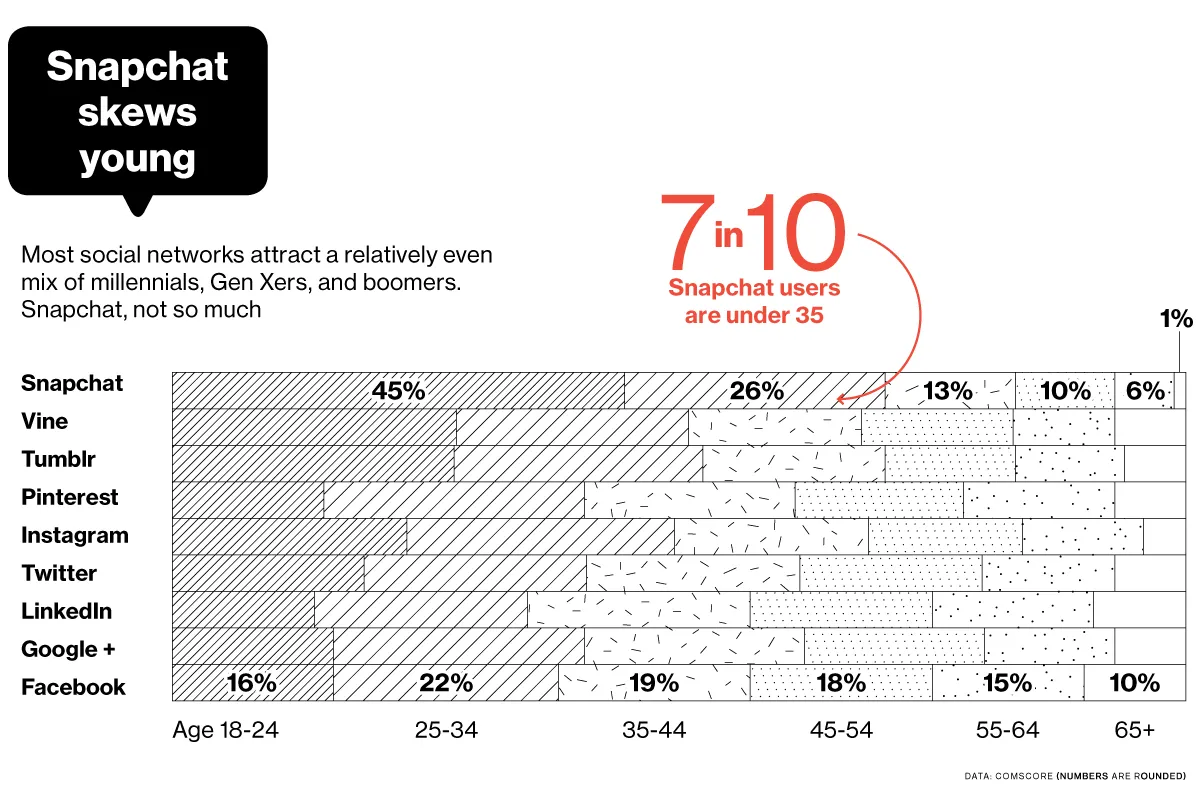 Snapchat 还在用户的短视频(不会消失)动态中出售广告,这一功能被称为“直播”,去年夏天首次推出。一些直播动态的观众超过了 3000 万,据三位熟悉 Snapchat 观众情况的人士透露——这个数字与去年冬季奥运会开幕式的观众人数大致相同。尽管如此,来自有线电视网络的片段在主要广告商中更受欢迎,从三星到通用电气。麦当劳在该频道于一月推出时购买了喜剧中心的 Snapchat 广告库存;宝马也为 CNN 的广告库存做了同样的事情。