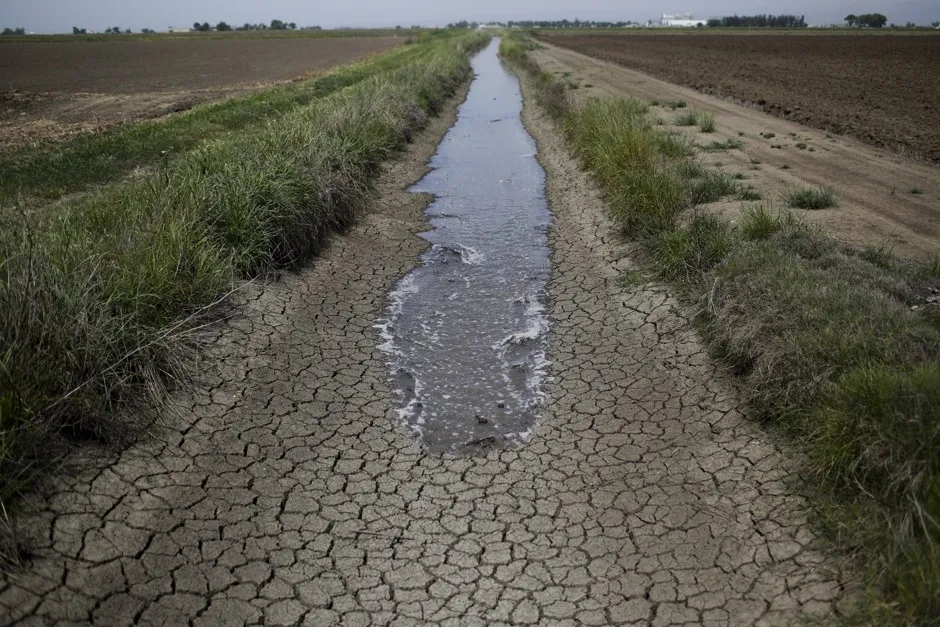 灌溉水沿着加利福尼亚州瑞奇维尔的稻田之间的干涸沟渠流动,为田地提供水源。美联社照片/洪在成随着该州面临有记录以来最低的雪水储量——仅为6%的长期平均水平——加利福尼亚州州长杰瑞·布朗的历史性命令要求全州水使用减少25%,让许多居民表示,终于。