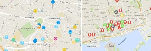 在葡萄牙波尔图(左)和加拿大多伦多(右)映射的初创企业mapme.comMapme使用“地图组织者”,通常是分布在全球各地的科技企业家,来创建可靠的地图。他们本质上充当Mapme的监督团队。