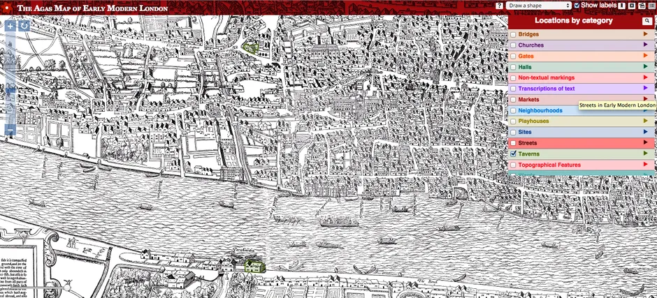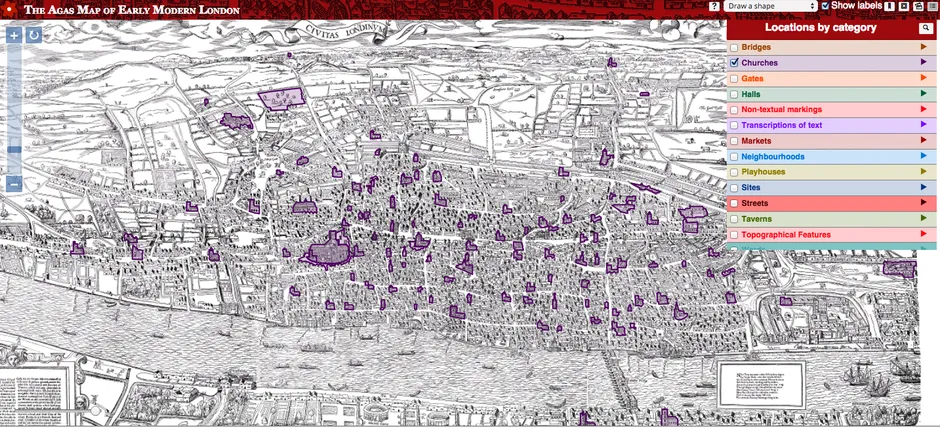 要理解这些引用并真正欣赏巴德的作品,了解他所写的城市是很重要的。这就是这个互动地图的作用早期现代伦敦(如上图所示)。