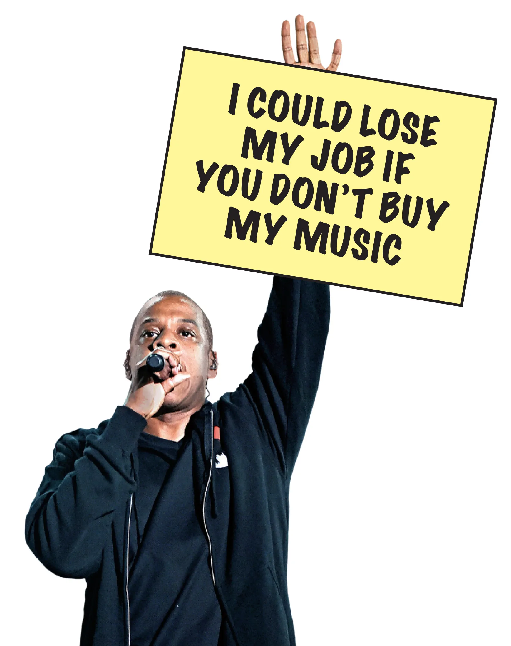 来源:Getty Images (3)如果你订阅了音乐服务Tidal,你可以听到Jay Z最喜欢的歌曲播放列表。现在他喜欢坎耶·韦斯特和说唱歌手肯德里克·拉马尔,还有一首90年代的冷门Outkast歌曲,从未成为热门。这张曲目列表在应用程序中显著显示,因为Jay Z拥有Tidal:他在今年早些时候以5600万美元从瑞典公司Aspiro购买了它。在3月30日的一场新闻发布会上,碧昂丝、蕾哈娜、泰勒·斯威夫特和其他流行明星搞笑地签署了一份看起来像总统法案的文件,Jay Z宣布他正在颠覆音乐产业。实际上,是阿丽西亚·凯斯为他做了这个声明。