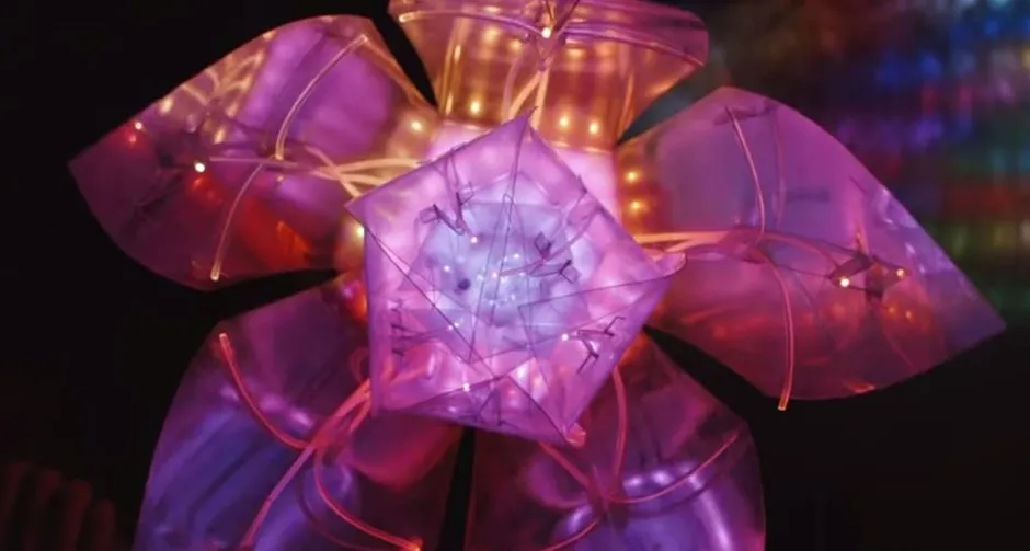 “神经花”是一座于周四在旧金山市中心首次亮相的公共雕塑。它看起来像是一片发光的放射性花园,或者说是一小群生物发光的深海生物。被其迷人的光芒吸引的人们会发现一个脑电图监测他们脑部活动的耳机。通过集中或放松注意力,他们可以使雕塑的花瓣在彩虹光谱中循环并打开,就像神奇的夜间开花的仙人掌。