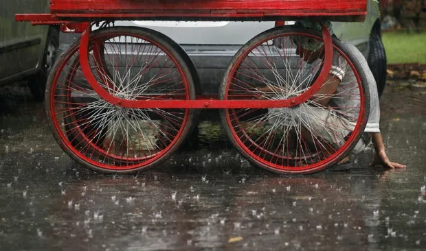 一位水果商在新德里郊区诺ida的雨中躲在他的推车下。路透社/帕里瓦尔坦·夏尔马尽管如此,经济自由化给社会边缘的劳动者带来了巨大的压力。正如达斯古普塔在他的 书中所解释的,城市旧有的社会秩序,倾向于保护贫困工人阶级居民的社会经济权利,已经解体。