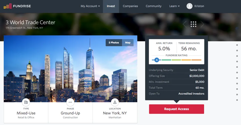 这之后为Fundrise带来了更大的交易——包括由Silverstein Properties开发的3号世贸中心——截至2014年5月,融资3100万美元。米勒表示,像Fundrise这样的房地产众筹平台在过去几年中筹集了1亿到2亿美元的风险投资。同时,他说,所有对房地产众筹领域的额外关注并没有使Fundrise退出城市。