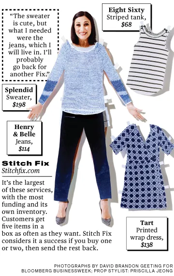 彭博社商业周刊埃隆·马斯克的首次高峰(和低谷)肯德里克·拉马尔如何将与德雷克的争执变成音乐超级明星希腊警方称鸡蛋是从试管婴儿诊所患者那里被盗的如何挥霍你的奖金,从透明电视到冰浴Stitch Fix的网站,配有看起来愉快的模特和聊天式的操作指南,旨在模仿一个值得信赖的顾问。(标语:“你个人风格的合作伙伴。”)你首先填写一份友好而详细的调查,描述你的时尚感、体型、预算和生活方式。然后你选择一个送货日期并支付20美元的造型费。你会收到一个包含五件惊喜服装的盒子供你试穿;你可以保留任何一件,或者全部退回而无需额外费用。如果你购买至少一件商品——每件商品的平均价格约为55美元——这20美元会被退还。如果你保留所有物品,你还可以享受总账单的25%折扣。