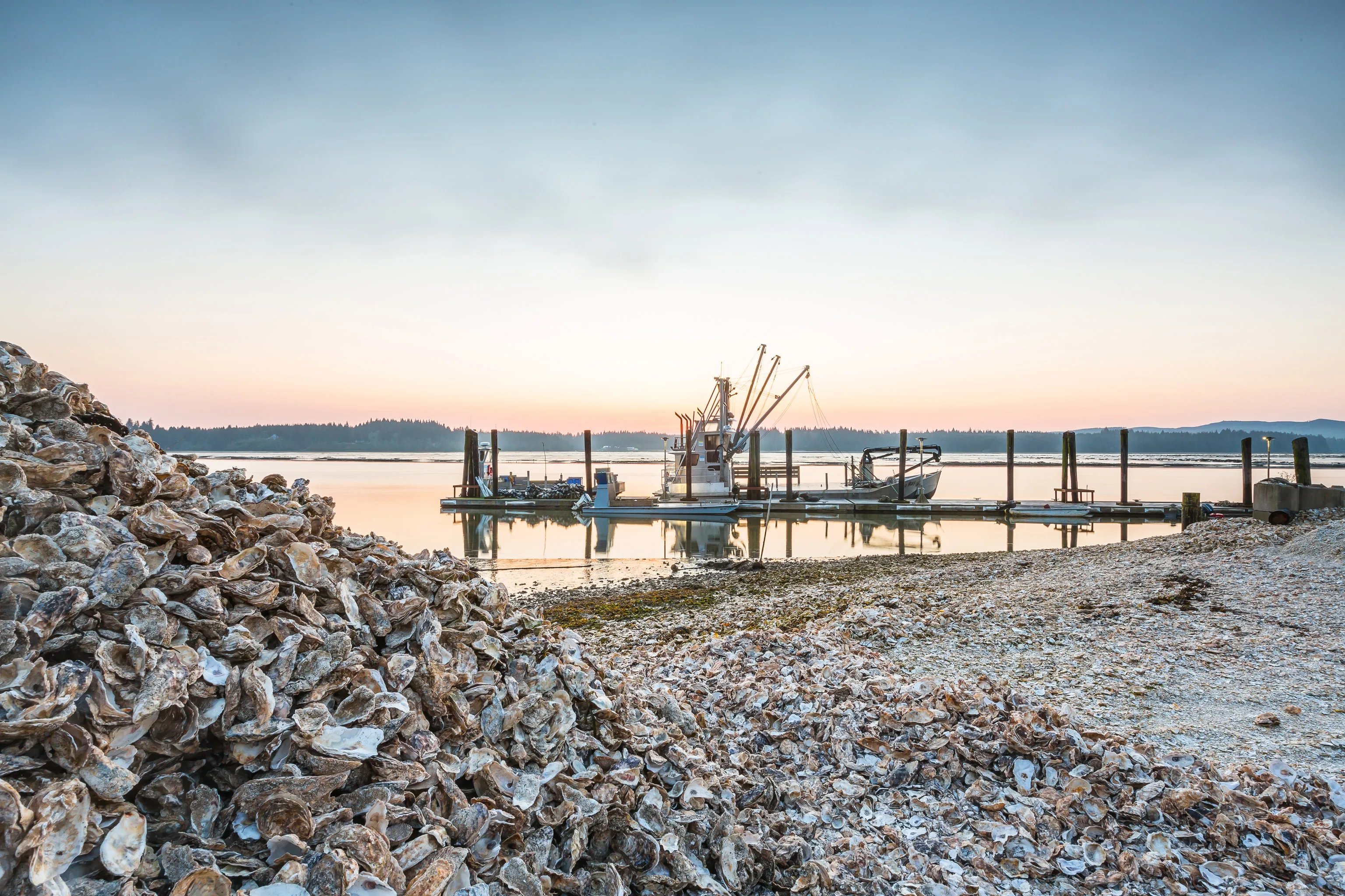 虾在1960年代初开始神秘地繁殖,像蝗虫一样肆虐。它们主宰了牡蛎生存的海底,但那时有一个简单的解决方案:牡蛎捕捞者用卡巴氯噻吨(DDT时代的神经毒素)轰炸虾。几乎没有人愿意吃的虾死了。牡蛎的收成很好,在沿海的纳科塔、南弯和牡蛎村等城镇,八家现已停业的牡蛎罐头厂蓬勃发展。
