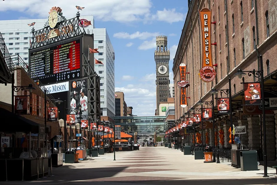 球迷在巴尔的摩的卡姆登园外观看比赛。美联社照片/马特·鲁尔克