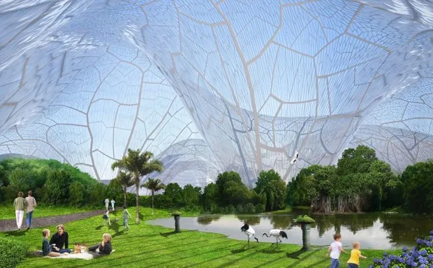 这就是国际建筑公司 Orproject 的创新且有些麻烦的愿景,他们提议在发展中国家的城市中点缀带有过滤空气的绿地。这个被称为“气泡生物多样性公园”的 新近获奖 的想法并不完全原创;早在1960年代,巴克敏斯特·富勒就梦想用一个抗污染的 2英里宽的半球体 将中城曼哈顿封闭起来。这个项目被证明不切实际,但Orproject的人们声称今天的技术可以支持更小、更轻便的温室——有点像 在穹顶之下 中可怕结构的更快乐版本。