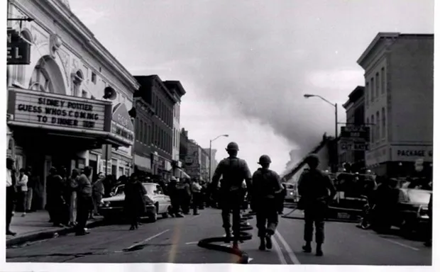 这是一张由巴尔的摩市警察局在1968年4月的民事骚乱期间拍摄的照片。詹姆斯·V·凯利/兰斯代尔图书馆特别收藏许多人回顾巴尔的摩1968年圣周起义,以理解本周困扰该市的冲突。但今天的事件与那一年的民事动乱关系不大,更与建立在其废墟上的全国性法治运动有关。