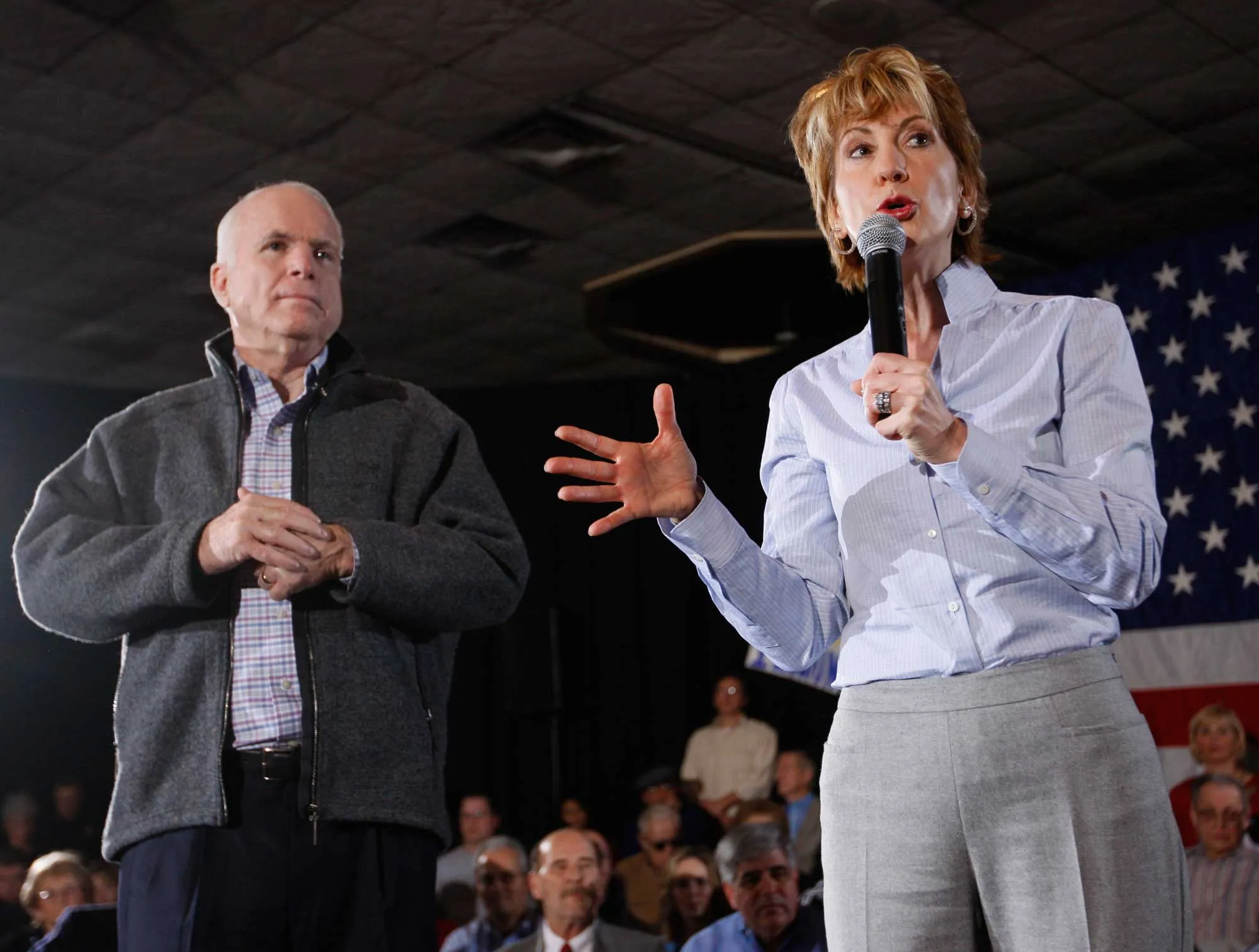 菲奥瑞娜在2008年1月12日星期六于密歇根州沃伦的安迪亚莫名人表演厅与共和党总统候选人约翰·麦凯恩进行竞选活动。查尔斯·达哈帕克/AP照片菲奥瑞娜在2008年重新出现,成为约翰·麦凯恩的经济顾问和代言人,这位共和党总统候选人,但她有时似乎忘记了自己不是主要人物——例如当她指出他的竞选搭档萨拉·佩林不具备管理大型公司的资格时。然后,在试图收回这番言论时,她表示麦凯恩自己等人也不合格。之后,CNN引用了一位麦凯恩竞选官员的话说:“卡莉现在将消失。”