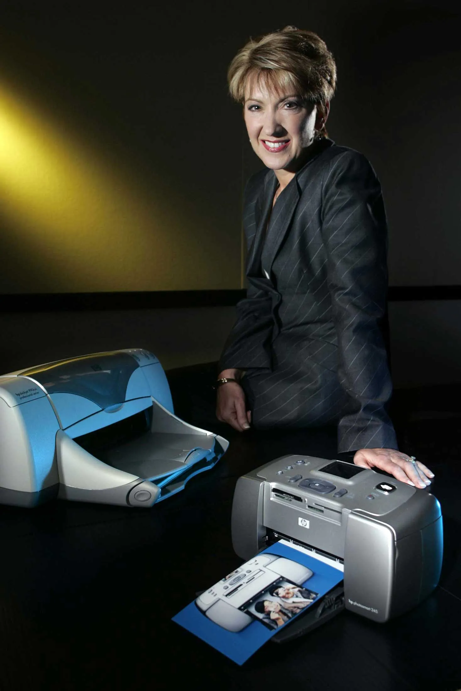 卡莉·菲奥瑞娜在2004年5月10日于帕洛阿尔托与惠普的两款打印机,HP Deskjet 990 cxi(左)和HP PhotoSmart 245合影。彼得·达西尔瓦/《纽约时报》/Redux作为一名以商业才能为基础的候选人,菲奥瑞娜面临的主要问题仍然是,当她被赶出公司时,她如何谈论自己在惠普的成就记录。她说,领导者会树敌。她坚持认为,当她离开时,公司正处于良好的发展轨道上。“首先,”她说,“我被解雇的故事并不是很多人所讲的故事。我的解雇在两周内发生,因为几位董事会成员决定向《华尔街日报》泄露机密信息,然后我们在董事会会议上发生了争吵,并对此进行了对峙。”