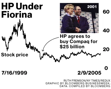 弗兰克的预测几乎是正确的:菲奥瑞娜在AT&T迅速晋升,成为其硬件和系统部门的高级副总裁,然后帮助推出其分拆公司,朗讯科技。到1998年,她被《财富》杂志评选为商界最有权势的女性,次年被任命为惠普的首席执行官——第一位管理《财富》50强公司的女性。但随后惠普进行了自愿减薪,接着裁员30000人。在2002年与电脑制造商康柏的争议性合并中,惠普的股票暴跌,而她曾如此有说服力地承诺的大额利润从未到来。2005年,董事会解雇了她,并给了她2100万美元的遣散费。