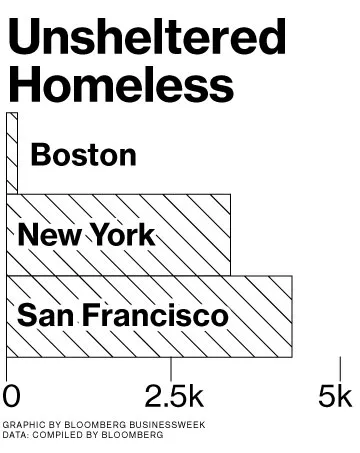 彭博商业周刊埃隆·马斯克的首次高峰(和低谷)肯德里克·拉马尔如何将与德雷克的争执变成音乐超级明星希腊警方称鸡蛋是从试管婴儿诊所患者那里被盗的如何挥霍你的奖金,从透明电视到冰浴根据美国住房和城市发展部的数据,旧金山在无家可归者数量上全国排名第9——2014年有6408人。超过67%的无家可归者生活在户外。在纽约,这一数字为5%,而纽约的无家可归者数量大约是旧金山的10倍。