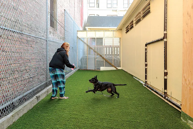 摄影师:Jason Henry为彭博商业周刊位于旧金山使命区中心的导航中心并不是典型的无家可归者庇护所。其他设施按性别将居民隔离,并限制他们在场所内的时间。这个一个月大的导航中心接纳情侣和朋友团体,允许他们随意进出。居民可以带着他们的物品,直到找到永久住房、与家人团聚或参加药物滥用或心理健康治疗项目为止。该中心的最大容纳人数为75人,甚至欢迎狗。这是一个44岁名叫Jonny的男子在空置洗车场蹲了几个月后选择留在这里的一个重要原因。站在中心的庭院里,他的杂种犬Felony Jack在他身边,Jonny说:“我通常对庇护所有问题,因为我在监狱待过很长时间,它们总是让我想起监狱。”