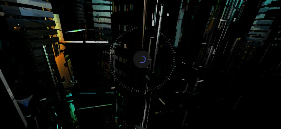 通过艺术家数字无人机的驾驶舱,这座城市是一个阴暗的地方,充满了鲜明的几何形状和其他滑行机器,但完全没有人——包括肯达尔·詹娜。