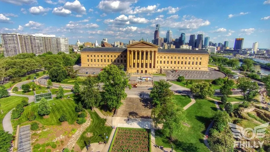 费城艺术博物馆的无人机视角。卫星,费城空中### 无人机行动主义