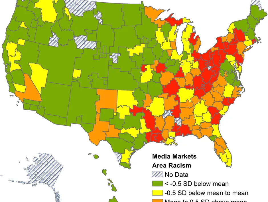 这些发现表明,区域种族主义(通过包含“N字”的谷歌搜索比例进行索引)不仅与所有原因的黑人死亡率显著相关,还与黑人和白人之间的死亡差异相关。