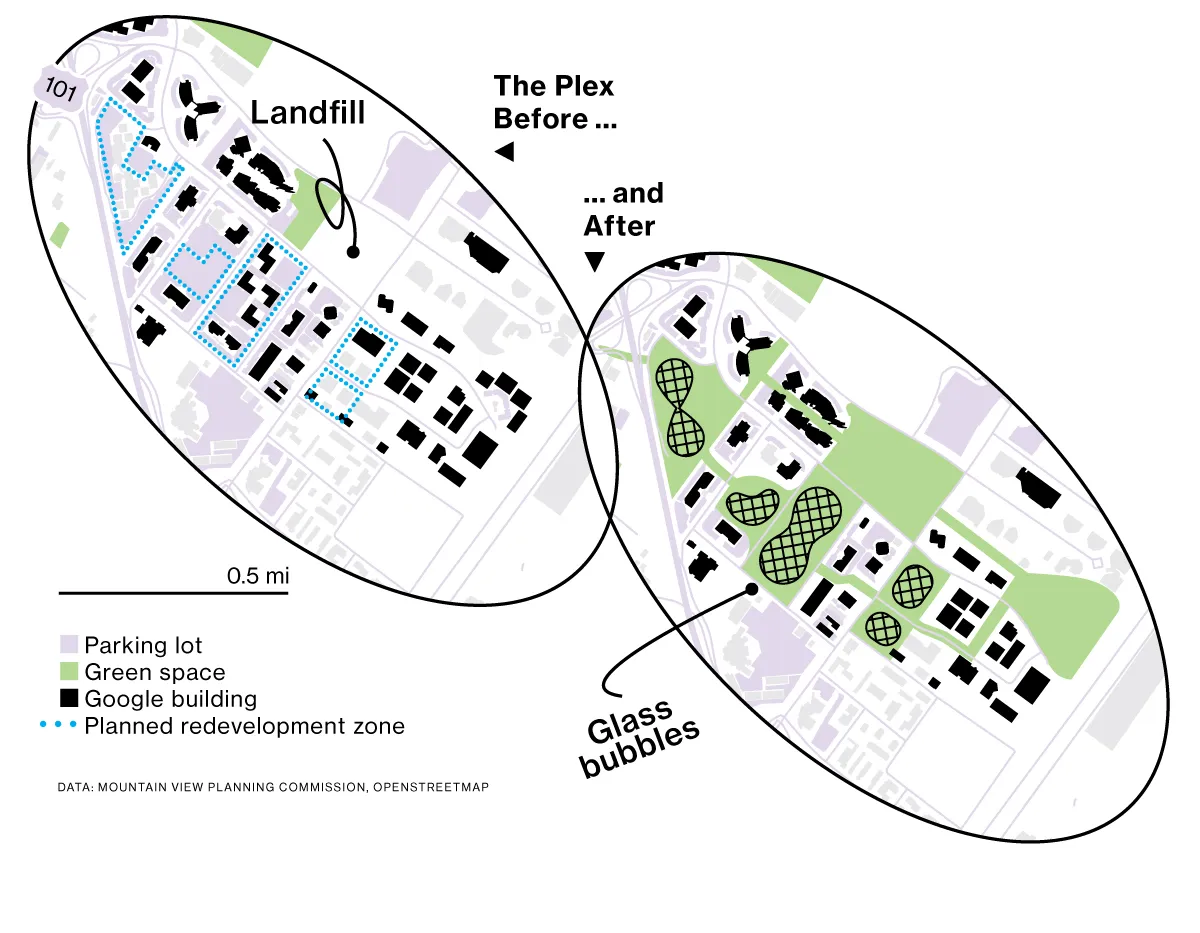 来源:BIG/Heatherwick工作室谷歌今年推出的最雄心勃勃的项目不是智能手机、网站或来自谷歌X实验室的自主亚轨道气球。你无法触摸它、下载它或立即与朋友分享。事实上,它的第一部分可能至少要三年才会存在。但你可以在数百页的高亢描述和概念图中阅读到关于它的所有信息,这些文件是公司在二月份提交给加利福尼亚州山景城的地方规划办公室的。