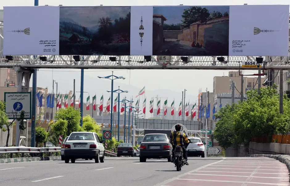 告诉我,美国,最后一次在你们城市的广告牌上展示伊朗艺术作品是什么时候?#德黑兰
