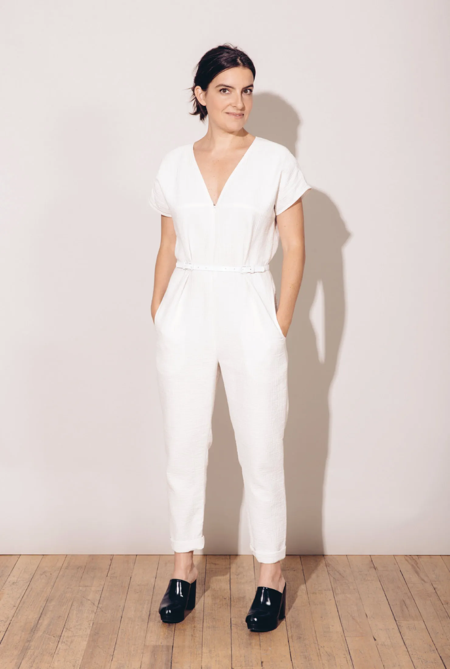 科米在她的工作室里,穿着2014年春夏设计。