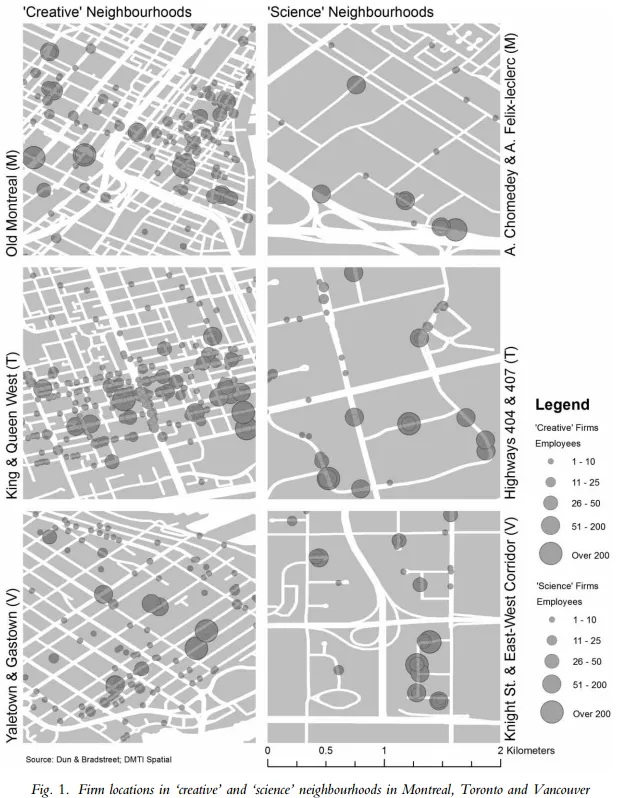 一项 新研究 发表在 区域研究 期刊上,由我的马丁繁荣研究所(MPI)和多伦多大学的同事 格雷格·斯宾塞 详细研究了高科技产业与那些促进充满活力的艺术、文化和音乐场景的社区类型。他专注于加拿大的三个主要城市区域:多伦多、温哥华和蒙特利尔。斯宾塞将高科技或“基于科学”的产业定义为涵盖计算机、软件、制药和医学,以及研究与开发,而“创意”产业则包括电影和视频、音乐、广播和电视,以及设计,以及独立艺术家、作家和表演者。(这比 我自己基于职业的创意阶层定义 更狭窄。)