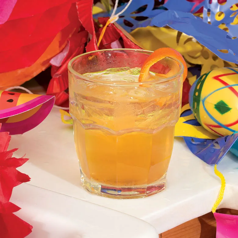 1½盎司的reposado龙舌兰½盎司的mescal½盎司的龙舌兰蜜1-2滴摩尔苦味酒橙皮(用于装饰)