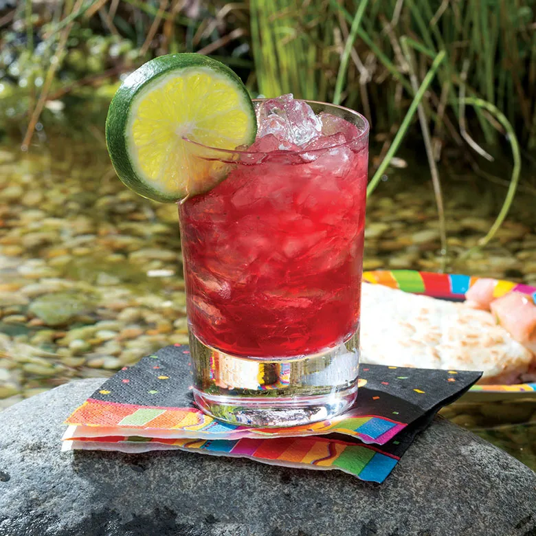 在装满冰块的岩石杯中混合龙舌兰酒、汽水和青柠汁。轻轻搅拌,以免搅动汽水。