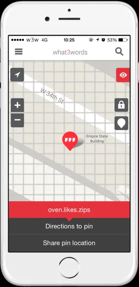 帝国大厦附近的一个地点代码为“oven.likes.zips”。What3Words伦敦的拼车和出租车应用 GoCarShare 和 Bounce 已经将What3Words的算法整合到他们的服务中。得益于What3Words的特殊地理编码系统,他们的司机现在可以在10平方英尺的范围内准确找到等待接送的客户。预先编程的送达地点也变得更容易。