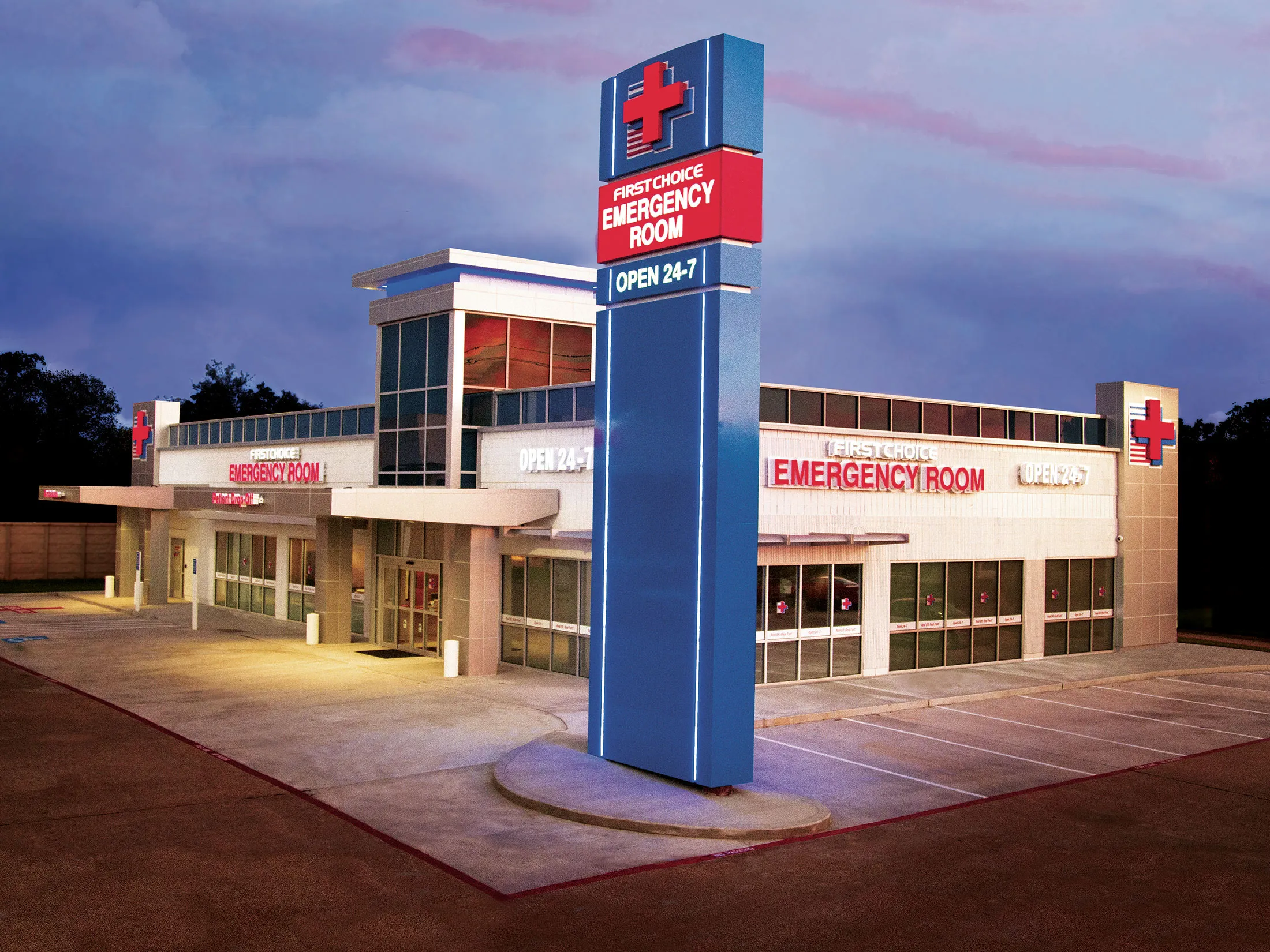 第一选择中心全天候开放,由获得董事会认证的急诊医生值班。他们设有放射学实验室,并能够处理基本的急救护理,例如固定骨折或稳定心脏骤停的患者。需要手术或高级护理的患者将被转送到附近的医院接受治疗。在德克萨斯州,第一选择中心已在购物中心开设。