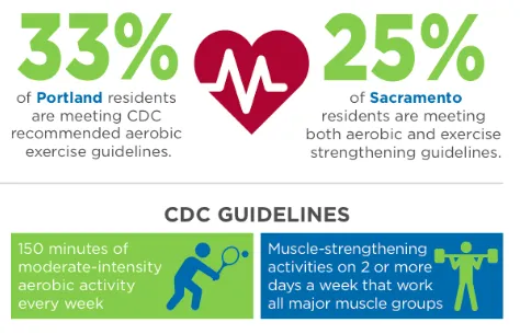 这个项目——美国运动医学学院与安森保险基金会的合作——并不是仅仅根据个人的行为(如每日锻炼)来确定排名。是的,城市确实因居民的锻炼和蔬菜消费而得分,但它们还根据支持健康生活方式的基础设施进行评分,包括休闲设施的数量、农贸市场的普及程度和公园用地的面积。例如,在华盛顿特区,95%的居民距离当地公园不到10分钟的步行路程。只有31%的印第安纳波利斯居民可以这样说。