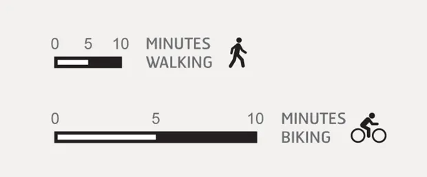 对于乘客来说,这些变化意味着往返停靠站的步行距离更远。这显然在奥马哈是一个难以接受的提议。(“这对这里的人来说有点困难,”施韦茨说。“他们不太喜欢这个想法。”)因此,地铁在其新路线图中加入了步行和骑行的关键(如下),希望人们能意识到他们可能比想象中更接近高频率的路线。
