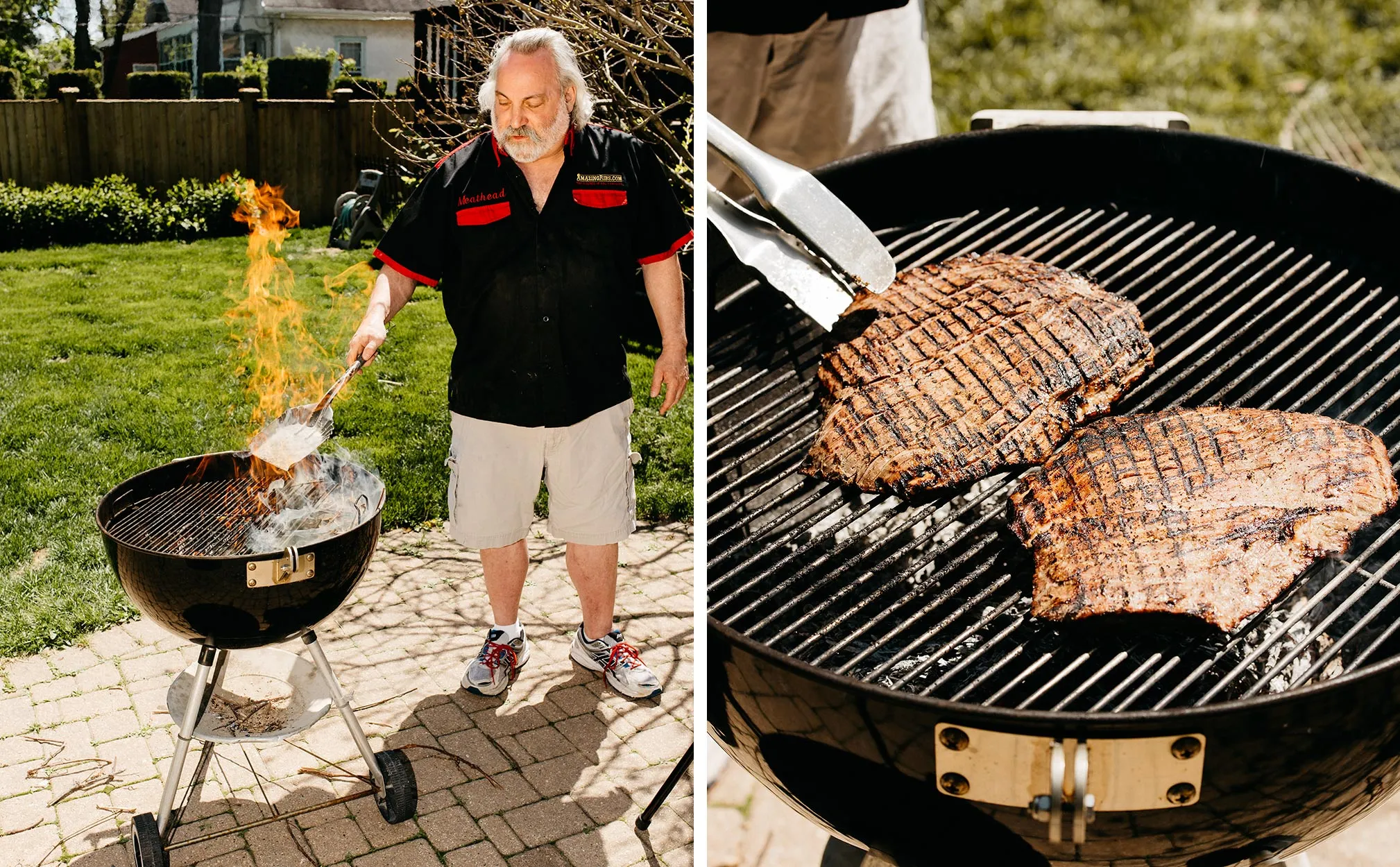 在戈德温的后院,狗狗瑞斯和艾薇在AmazingRibs.com上评测的一排烤架之间游荡,从一台旧的韦伯烤炉到一个大绿蛋,再到一个在五分钟内加热到超过700度的篮球大小的设备。另一个燃烧压缩锯末颗粒的设备配备了一个可编程恒温器,可以保持恒定的烤架温度。“它们都适合烹饪不同的东西,”他说。