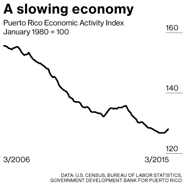 彭博社商业周刊埃隆·马斯克的首次高峰(和低谷)肯德里克·拉马尔如何将与德雷克的争执转化为音乐超级明星地位希腊警方称鸡蛋是从试管婴儿诊所患者那里被盗的如何挥霍你的奖金,从透明电视到冰浴未支付的电费账单只是对波多黎各未来感到悲观的一个原因。这个自我管理的美国领土比最贫穷的州密西西比还要贫穷。它正在流失人口并且预算赤字不断。自2006年以来,其经济几乎持续萎缩,当时一个名为第936条的美国税收减免到期。劳动力参与率低。政府的一般义务债券被降级为CCC+(勉强超过Prepa的CCC–)。而且,人口在美国州地位这一关键问题上仍然深深分裂,其在国会的无投票代表为此而奋斗,而州长则主张维持现状。波多黎各及其机构的债务达到720亿美元,超过了除加利福尼亚州和纽约州以外的每个州。6.3亿美元的债务支付将在7月1日到期。朋友们无处可寻。这个长方形的岛屿已经被大多数曾经吞噬其债务的市政债券基金抛弃。由于信用评级不佳而被切断了进入债务市场的渠道,波多黎各似乎即将陷入困境。