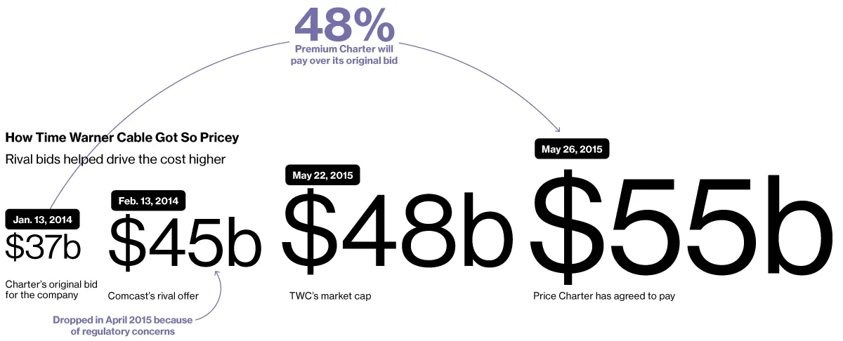关于TWC的竞标战不太可能发生,因为人们认为Charter的报价对阿尔蒂斯来说过高,无法超越。“德拉希是一位激进的成本削减者,他的出现迫使马龙加快了行动,”Wunderlich证券的分析师马修·哈里根表示。“他们想要锁定这一交易。”