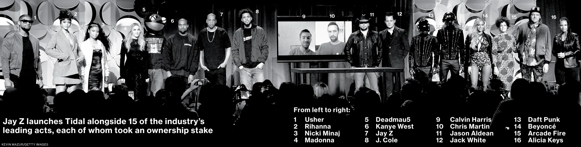 Jay Z 在三月底的新闻发布会上揭晓了 Tidal,身边站着音乐界15位最大的明星,包括他的妻子碧昂丝、麦当娜、尼基·米娜、蕾哈娜、杰克·怀特和坎耶·韦斯特,所有人都被介绍为股东。许多人看起来尴尬且没有准备。另一位股东艾丽西亚·凯斯引用了尼采,并对 Tidal 的文化意义赞不绝口:“我们聚集在一起……以一个声音,团结一致,希望今天将成为历史上另一个重要时刻,一个将永远改变音乐历史进程的时刻。”关于在数字时代恢复音乐价值的乌托邦言论很多,但花在新功能、技术或其他让听众尝试并为 Tidal 订阅付费的理由上的时间却很少。