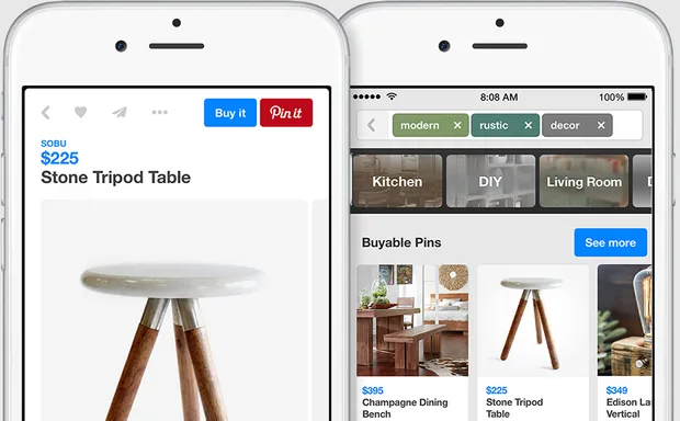 Pinterest在周二,Pinterest 宣布了一项计划,让在线购物者(可能是麻布)心潮澎湃:可购买的图钉,这是一个电子商务平台,客户可以直接在 iPhone 或 iPad 应用中点击购买。一个蓝色图标将指示某个商品可以购买。客户可以使用信用卡或 Apple Pay 付款。Pinterest 不会从卖家的收入中抽成。
