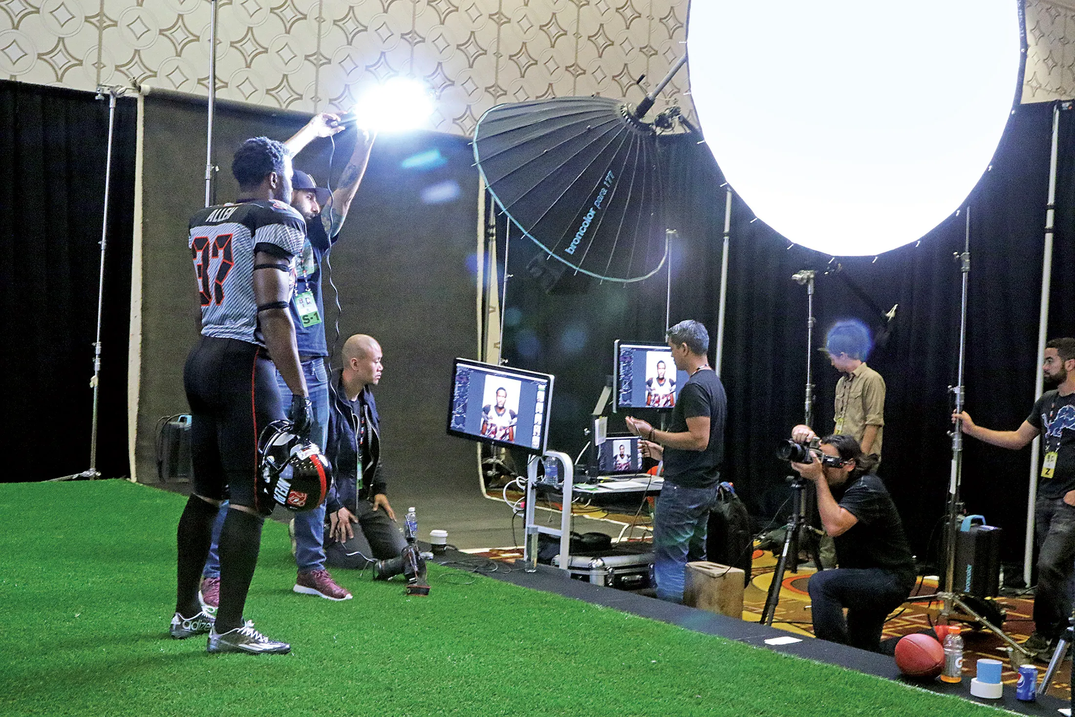 贾沃里乌斯 “巴克” 艾伦为NFLPA品牌的照片拍摄摆姿势。