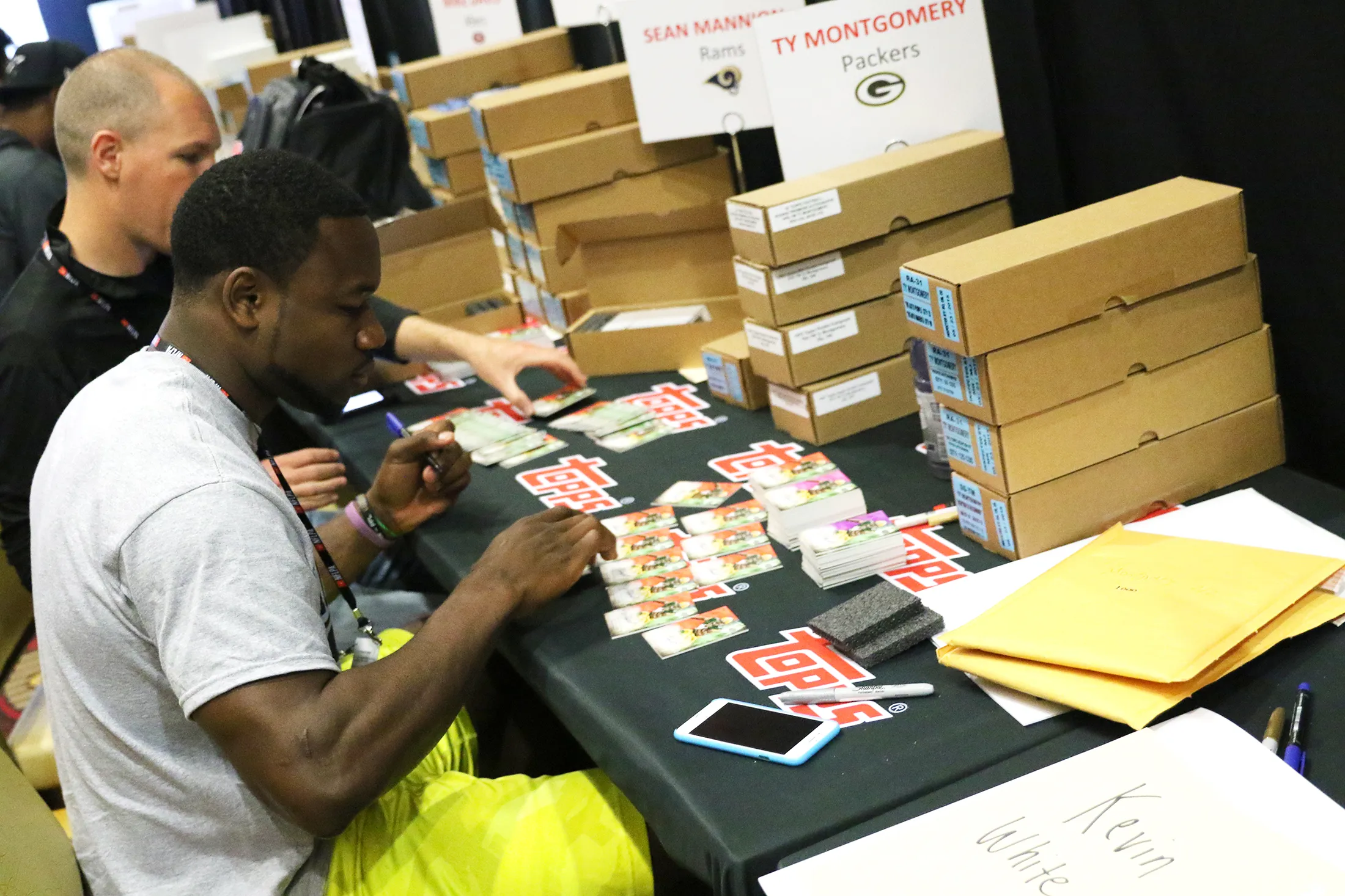 泰·蒙哥马利,绿湾包装工队的外接手,为交易卡公司Topps签名。