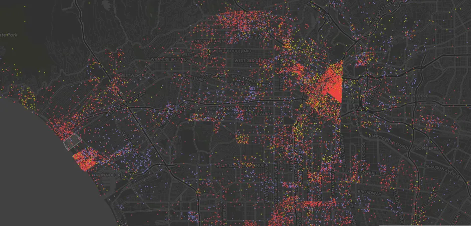 洛杉矶的无家可归现象正在激增。来自一项双年统计的新数据显示,去年一月——被描述为有史以来最严格和准确——揭示了洛杉矶县有44,359人睡在街头、汽车中和无家可归者收容所中,自2013年以来增加了12%。道格·史密斯和乔恩·施劳斯在洛杉矶时报制作的地图提供了这些成千上万的人晚上栖身何处的严峻洞察。