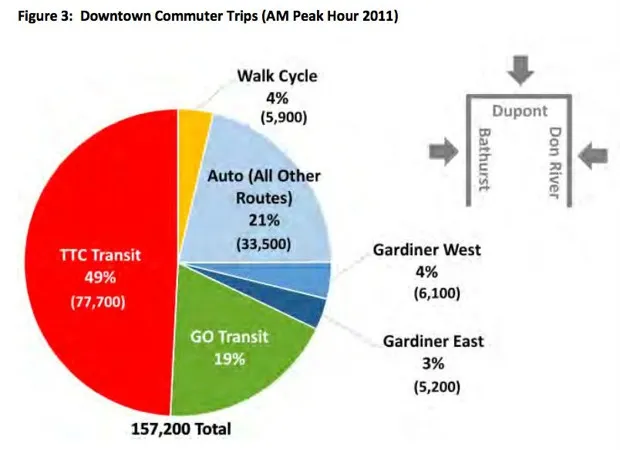拆除加尔德纳高速公路可能会造成轻微的延误,但只有3%的高峰期通勤者使用它。迪伦咨询市长托里并不认为这次延误是微不足道的代价,并被引用说每次出行的延误可能会达到10分钟。这个数字会引起一些警觉,但这是一个非常值得怀疑的数字——来自于一项 由几个卡车协会委托的研究。该研究本身并没有强调10分钟延误的可能性,而是将其作为估计的外部范围,实际可能每次出行的额外时间为零分钟(幻灯片45)。