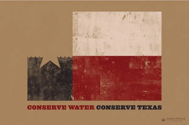 最后,老百姓的公民或州自豪感呢?如果有哪个地方有机会激发居民的行为改变,那可能就是德克萨斯州。尽管德克萨斯水资源保护协会从未使用过它们,但奥斯汀的设计师 阿曼达·帕斯夸利的“节约德克萨斯” 图形对节水发出了强烈的呼吁。(虽然该州最近遭遇了毁灭性的洪水,但在此之前经历了许多年的干旱。)一颗干燥、尘土飞扬的孤星似乎正在从它的旗帜上蒸发。节约用水不仅仅是关乎人们——这关乎拯救你所爱的土地。我可以支持这一点。