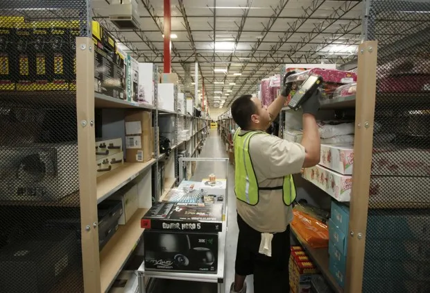 一名发货挑选员在亚利桑那州古迪尔的80万平方英尺的亚马逊仓库内挑选货物。美联社照片/罗斯·D·富兰克林这一模式同样适用于实体工作场所。亚马逊和沃尔玛都因(以及 起诉) 被指责剥削为这些公司专门包装和运输货物的外包仓库工人的工资。在其他地方,零售、餐饮和其他行业不规律的兼职就业的惊人增长严重影响了工人每周预测工资的能力。