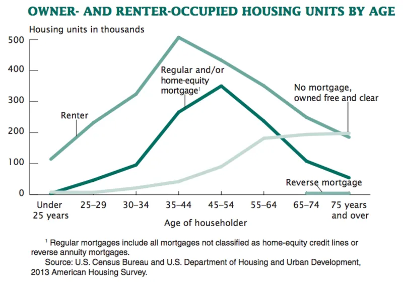 美国住房调查在纽约,30岁的租房者数量大约是30岁房主的四倍。与 费城大都市区相比,租房者和买房者的数量几乎相等,都是30。在 波士顿、 芝加哥、 奥斯丁、 哈特福德和 华盛顿特区等大都市区,30岁时租房者多于买房者,但在所有这些城市中,买房者在35岁左右超过租房者。
