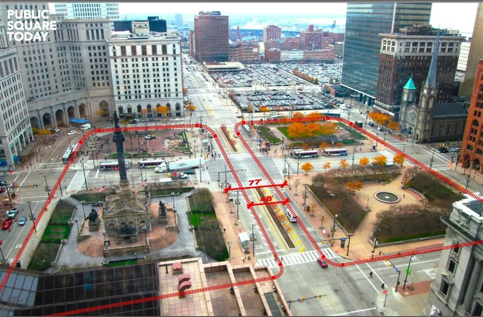到2008年克利夫兰寻求科纳的帮助时,关于如何改造广场的许多想法已经出现并消失。它们都受到一个假设的影响,即周围的交通不能受到干扰。科纳提出了一个大胆的想法:如果我们不能移除街道,那就建一个高架公园在它们上面。山顶公园的概念没有实现,因为成本和复杂性,但佐勒表示,这让当地人重新想象公共广场是一个优先考虑人而非汽车的地方。交通分析确定城市可以关闭一条街道,并将另一条街道缩窄为公交通道,在重大活动期间可以重新规划。科纳的最终设计的建设在今年春季开始,预计成本为3200万美元。