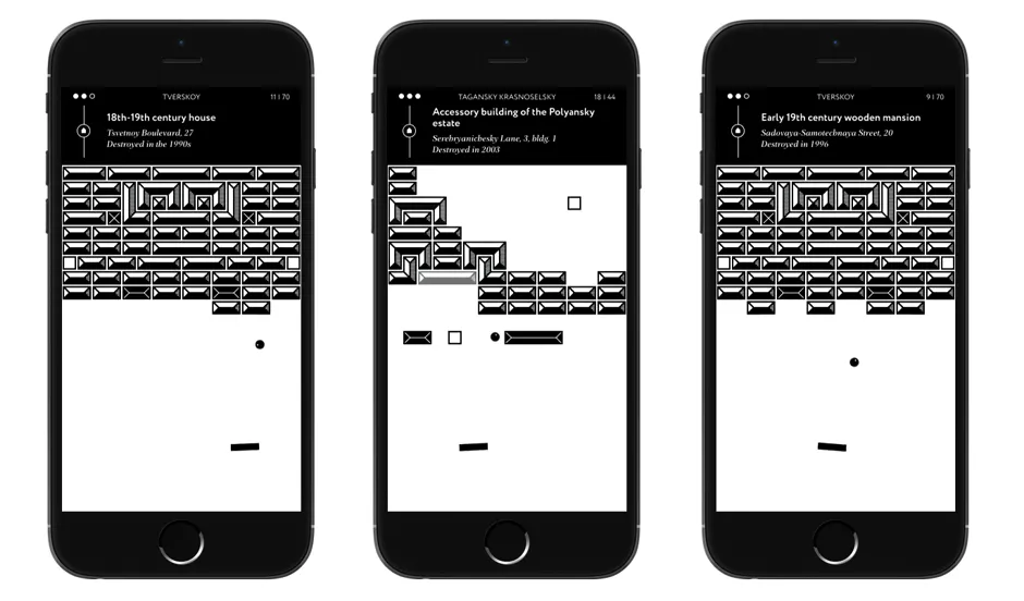 但是,为什么要阅读报告呢,既然你可以玩游戏?在Archanoid应用中,每个方块代表自1990年代以来失去的建筑。当你在每个关卡中冲破时,你会获得特殊成就,包括停车场、复制品、推土机,以及 尤里·卢日科夫的著名帽子。