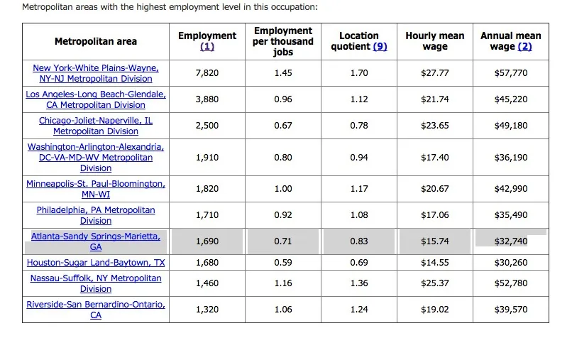 根据劳工统计局的资料,亚特兰大是全国雇佣回收工人的前10个大都市之一,而萨利纳斯大都市区在全国回收工作中拥有最高的地区比率,劳工统计局将其定义为“职业就业区域集中度与全国平均集中度的比率”。