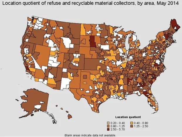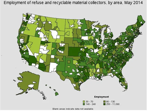 根据劳工统计局的资料,亚特兰大是全国雇佣回收工人的前10个大都市之一,而萨利纳斯大都市区在全国回收工作中拥有最高的地区比率,劳工统计局将其定义为“职业就业区域集中度与全国平均集中度的比率”。